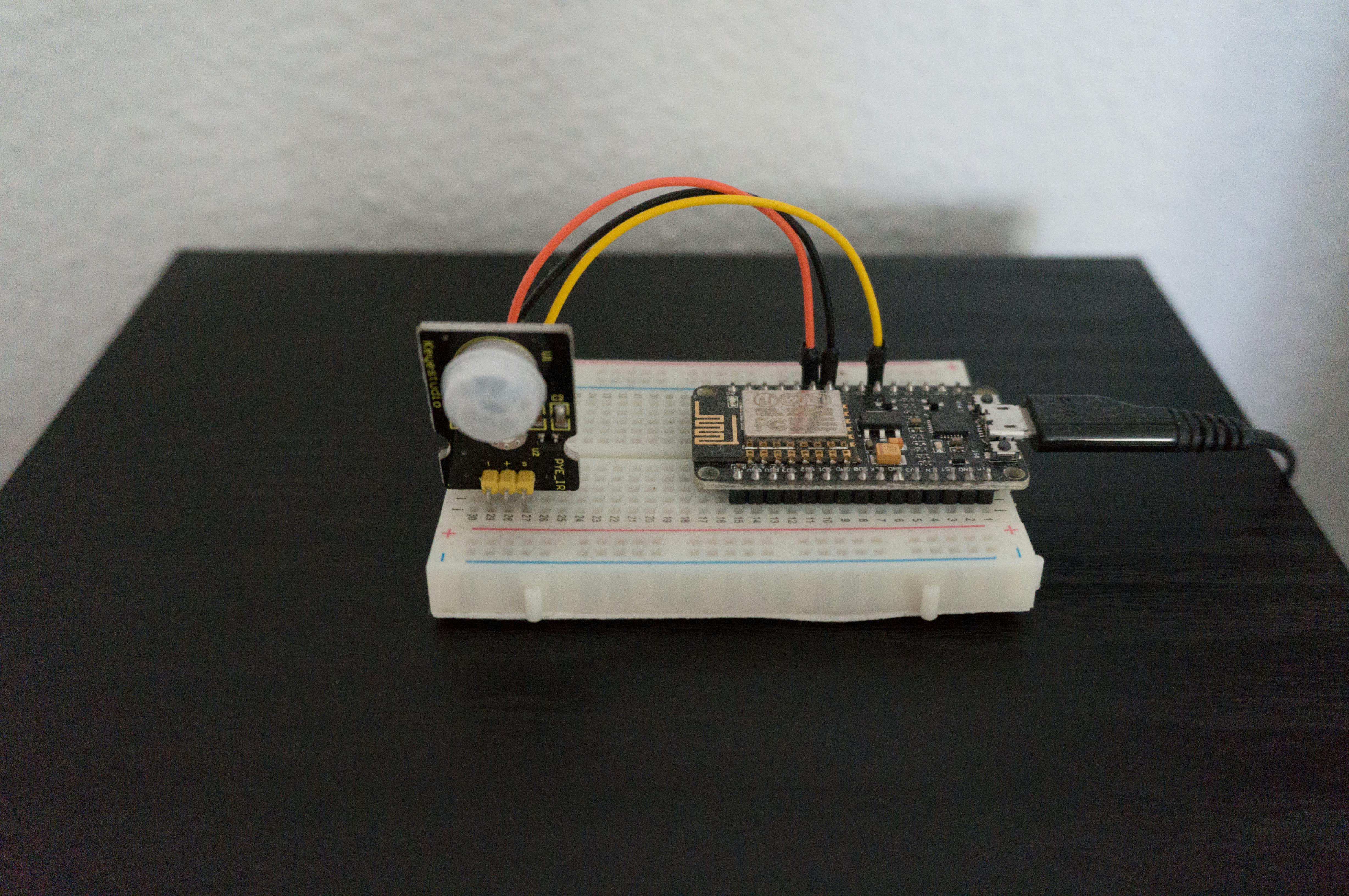 De automatische televisieverlichting smaakte naar meer en het leek me leuk om nooit meer een afstandsbediening, wandschakelaar of app nodig te hebben om de verlichting in te schakelen. De verlichting moet vanzelf inschakelen op het moment dat ik aanwezig ben en weer uitgaan als ik er niet ben. Een bewegingssensor in de betreffende ruimte leek me de beste oplossing. Philips verkoopt zelf bewegingssensoren voor het Hue-systeem, maar het leek me handiger om een bewegingssensor te hebben die direct met Domoticz communiceert. Zo kan de aanwezigheidsdetectie eventueel ook voor andere dingen gebruikt worden. Er zijn diverse manieren om een bewegingssensor te koppelen. Zo kun je KlikAanKlikUit- of ZWave-sensoren koppelen, mits je de Raspberry Pi van de juiste radio’s voorziet. Omdat ik niet wist of een bewegingssensor écht handig is, heb ik vooralsnog gekozen voor een veel goedkopere oplossing. Ik heb een voor Arduino bedoelde bewegingssensor van zo’n twee euro gekoppeld aan een NodeMCU: een op Arduino lijkende microcontroller van zo’n vier euro met wifi. Door op de NodeMCU de gratis firmware ESP Easy te zetten, koppel je sensoren eenvoudig met Domoticz.