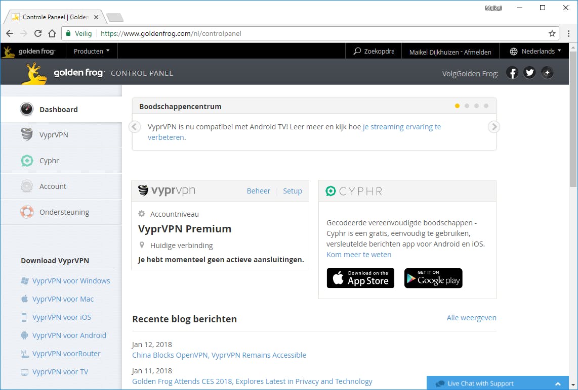 Heb je eenmaal een geschikte vpn-aanbieder gevonden, dan is het zaak om jezelf te registreren. Sommige aanbieders hanteren diverse abonnementen, die onderling verschillen in het aantal serverlocaties en de hoeveelheid gelijktijdige verbindingen. Vul je persoonlijke gegevens in en geef aan op welke wijze je wilt betalen. Dat kan doorgaans via een creditcard, PayPal of bitcoin. Na aanmelding sturen de meeste aanbieders een bevestiging per e-mail. Als je het account bevestigt, heb je toegang tot een online bedieningspaneel. Naast betaalinformatie vind je hier vaak Engelstalige instructies om een vpn in te stellen.