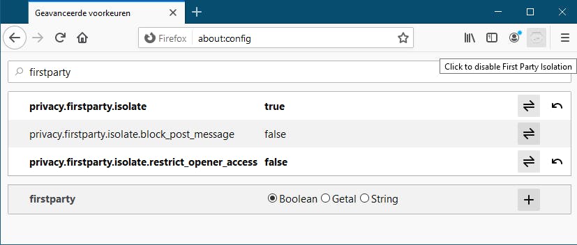 Firefox heeft een handige functie ingebouwd tegen cross-site-tracering via cookies van derden: First Party Isolation (fpi). Het komt erop neer dat zulke cookies, evenals andere surfdata zoals de browsercache, alleen nog binnen het actuele domein benaderbaar zijn en er dus geen cross-site tracering meer mogelijk is. Je activeert deze functie als volgt: Tik about:config in, zoek naar firstparty en dubbelklik vervolgens op privacy.firstparty.isolate zodat de waarde op true wordt ingesteld. Levert dit onverhoopt problemen op, dan kun je die instelling wat verzachten door de twee andere opties hier op false in te stellen. Wil je deze fpi-functie met één muisklik kunnen in- of uitschakelen, dan kun je de extensie First Party Isolation installeren.