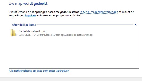 Lukt het niet? Open het configuratiescherm en navigeer naar Netwerk en internet / Netwerkcentrum / Geavanceerde instellingen voor delen wijzigen. Activeer de optie Netwerkdetectie inschakelen. Verder kan ook een ijverige firewall roet in het eten gooien. Nuttig is om in Windows Verkenner vanuit het onderdeel Computer een netwerkverbinding naar de gedeelde map te maken. Hiermee koppel je eenvoudig een schijfletter aan de gedeelde map.