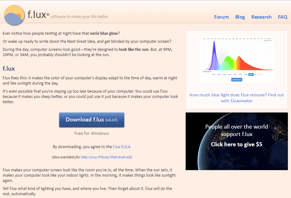 Moderne smartphones en tablets hebben een nachtstand, zoals Nightshift op iOS, of je kunt er een app voor downloaden. Deze nachtstand verandert ’s avonds de kleur van het scherm, zodat er minder blauw licht in onze ogen valt. Voor computers kun je het gratis programma f.lux downloaden en installeren, dat hetzelfde doet.