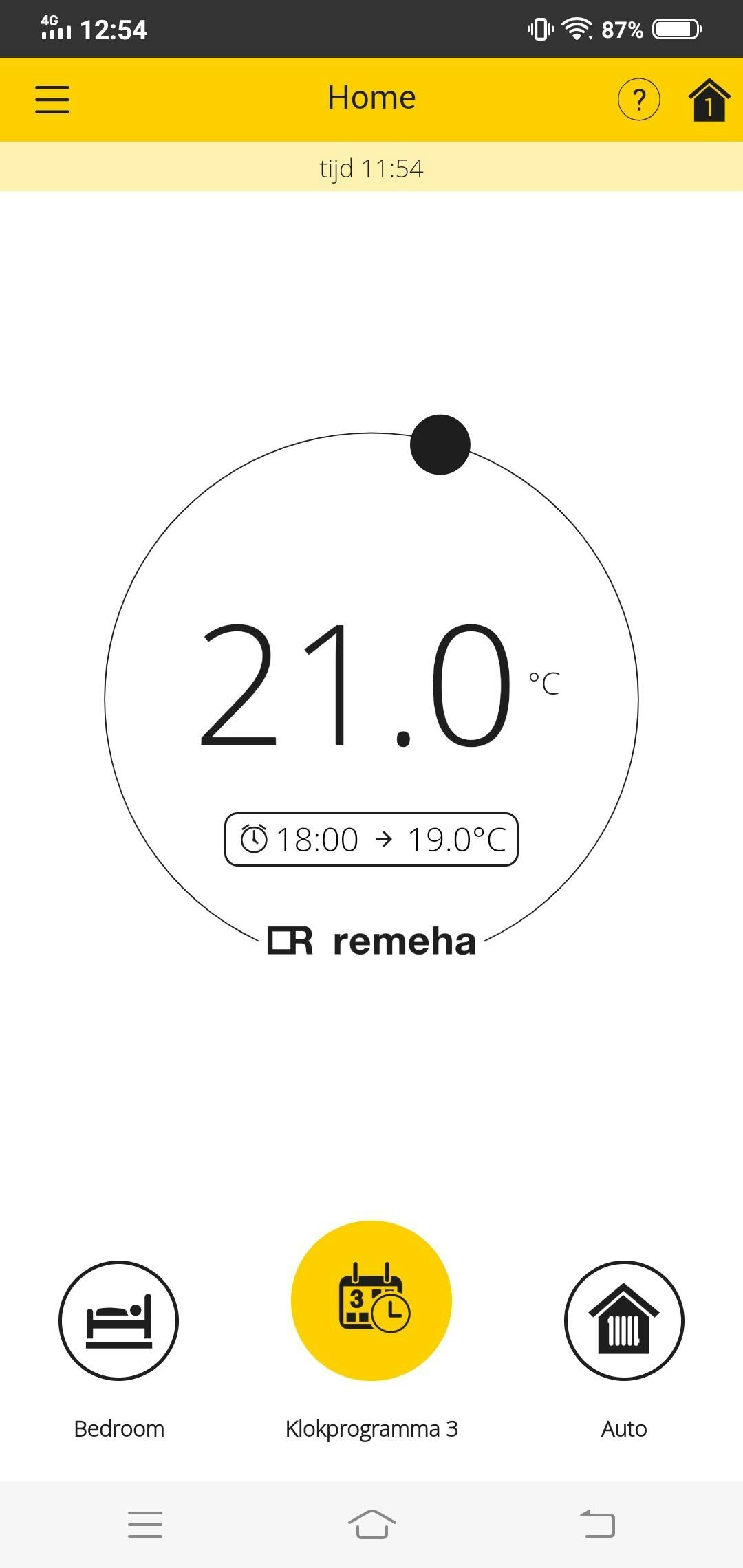 Met een klokprogramma kun je precies aangeven welk uur welke temperatuur je huis moet zijn. Zo gaat volgens je klokprogramma de temperatuur op maandag bijvoorbeeld van 12 tot 3 op 20 graden en van 3 tot 6 op 15 graden. Pas jij de temperatuur echter om half 3 handmatig aan (via de app of fysiek via de draaischijf op de thermostaat), dan zal de thermostaat toch om 3 uur weer naar 15 graden gaan, omdat het klokprogramma dan weer de overhand neemt. Er zijn drie verschillende klokprogramma’s in te stellen, zodat je bijvoorbeeld voor herfst, winter en lente de temperaturen net even kunt aanpassen.