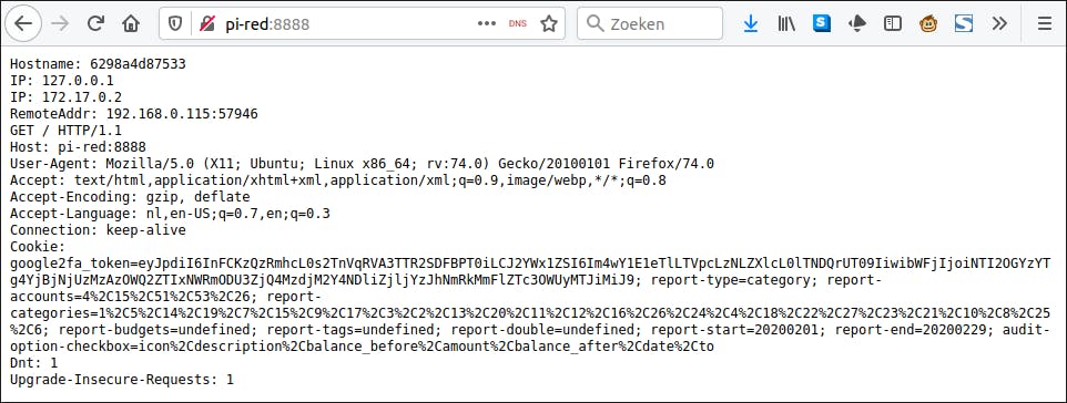 Als alles goed gaat, krijg je na een tijdje een lange tekenreeks met hexadecimale cijfers te zien (zoals 5122c935ce5178751a59699d2c5605c607700bd04e5f57a6c18de434ae53956e). Dit is het ID van de container. Als je nu in je webbrowser surft naar http://IP:8888 met in plaats van IP het ip-adres van je Raspberry Pi, krijg je een webpagina te zien die door de webserver in de container gegenereerd wordt.