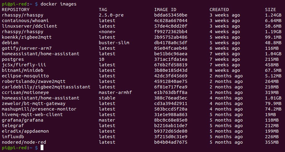 Update je regelmatig je Docker-images om de nieuwste versie in een container te draaien, dan blijven de oude images gewoon staan. De micro-sd-kaart van je Raspberry Pi met een capaciteit van hoogstens enkele tientallen gigabytes kan daardoor snel vol raken, zeker als je grote containers draait. Zo zijn containers zoals die van Home Assistant en Rhasspy meer dan een gigabyte groot. Nu werkt Docker wel met een systeem zodat bij een update niet die volledige gigabyte opnieuw gedownload en opgeslagen wordt, maar na vele updates blijft de benodigde opslag wel toenemen. Met de opdracht docker rmi IMAGE_ID verwijder je een image op basis van het ID dat je in de uitvoer van de opdracht docker images vindt. Docker kent ook de opdracht docker image prune waarmee je alle images verwijdert die niet door een container worden gebruikt. Met docker system prune verwijder je ook gestopte containers, netwerken die niet tenminste door één container worden gebruikt en cachebestanden.