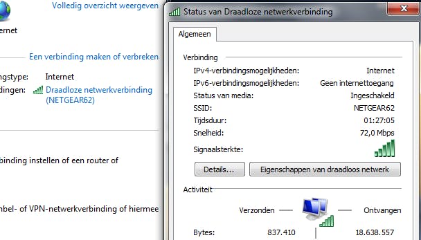 Bij details krijg je gegevens van je verbinding.