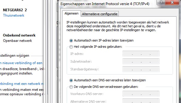 Mocht je in de modem/router van je internetprovider geen IP-adres kunnen vrijmaken, voer dan stap 5 uit, maar sla 'Vul bij LAN-TCP/IP instellen achter IP-adres je in stap 2 gekozen IP-adres in' over. Volg stap 1 opnieuw, totdat het eerste pop-up venster zich opent. Kies linksonder in het schermpje eigenschappen. Zet je cursor in het nieuwe venster op Internet Protocol versie 4 (TCP/IPv4). Let op dat je niet het vinkje afvinkt. Klik op Eigenschappen.. Vink het volgende IP-adres gebruiken: aan. Vul het IP-adres van de zojuist geïnstalleerde router in, bij subnetmasker hetzelfde als die van je modem (dit is meestal 255.255.255.0) en bij standaardgateway vul je het IP-adres van de Nighthawk in. Dit is hetzelfde adres waarmee je op de pagina van de router bent gekomen. Klik OK en vul in je webbrowser het IP-adres in. Je kunt nu eventuele aanpassingen doorvoeren op de router.
