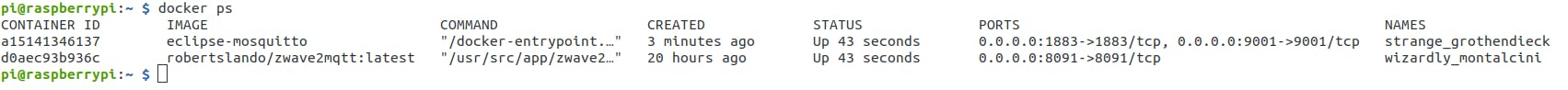 docker run -d --restart always -p 8091:8091 --device=/dev/ttyUSB0 -e TZ=Europe/Amsterdam -v /var/lib/zwave2mqtt:/usr/src/app/store robertslando/zwave2mqtt:latest