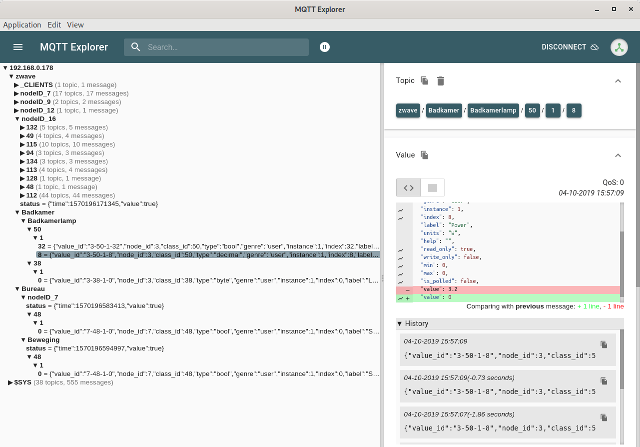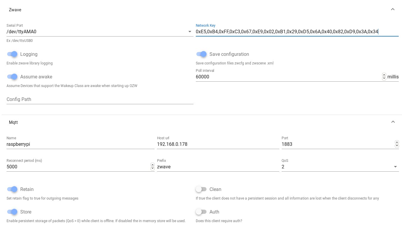 In de plaats van PREFIX gebruik je het prefix dat je in de mqtt-configuratie van Zwave2Mqtt ingesteld hebt, in ons voorbeeld zwave. En in de plaats van BROKER vul je het ip-adres van je mqtt-broker in, bijvoorbeeld dat van je Pi als je Mosquitto op je Pi geïnstalleerd hebt.