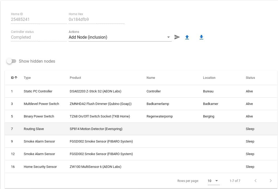Sla het bestand op en herstart daarna Home Assistant (in het menu Instellingen / Serverbeheer / Herstarten van de webinterface van Home Assistant). Wacht even tot Home Assistant opnieuw opgestart is. Daarna zouden al je Z-Wave-apparaten voor Home Assistant zichtbaar moeten worden.