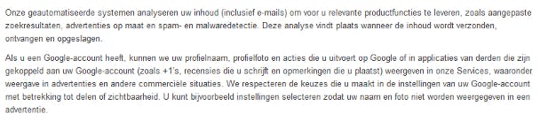 De nieuwe voorwaarden van Google laten je weten dat je mail gescand wordt.