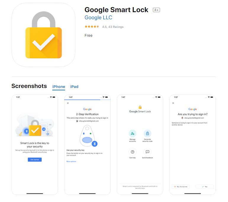 Om je iPhone in te stellen als beveiligingssleutel dien je er eerst zeker van te zijn dat deze draait op iOS 10 (die in september 2016 uitkwam) of later. Ook moet je zorgen dat je de Smart-Lock-app (versie 1.6 of later) installeert op je iPhone. Android-telefoons hebben deze app niet nodig.