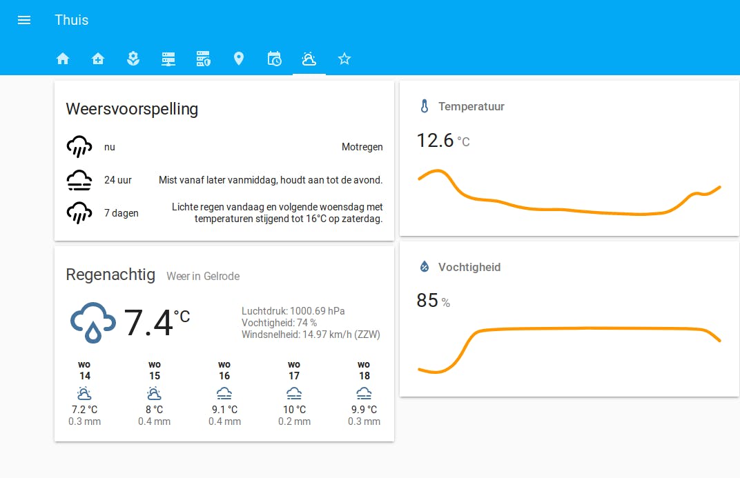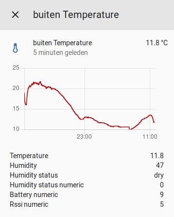 Je kunt nu je zonwering aansturen, maar je wilt dat Home Assistant dat automatisch doet op basis van sensoren. Dat kan op allerlei manieren, zoals op basis van de lichtsterkte of uv-sterkte buiten, maar het meest logisch is gewoon op basis van de binnentemperatuur, eventueel in combinatie met de buitentemperatuur. Een goedkope draadloze temperatuursensor (die je al voor een tientje vindt in een uitvoering met 433MHz-radiozender) is dus voldoende. Voeg een of meerdere sensoren toe, zet ze op de plaats waar je de temperatuur wilt meten en verzeker je ervan dat je in de webinterface van Home Assistant de temperatuur te zien krijgt. Heb je geen sensoren? Dan kun je ook werken met de virtuele sensor van Dark Sky die de buitentemperatuur teruggeeft.