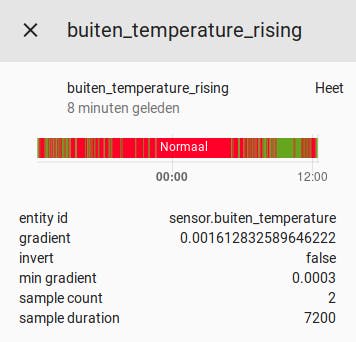 Deze sensor verzamelt gegevens over de laatste twee uur (7200 seconden) en wordt ingeschakeld wanneer de temperatuur minstens 1 graad per uur (1/3600 is afgerond 0,0003) stijgt.
