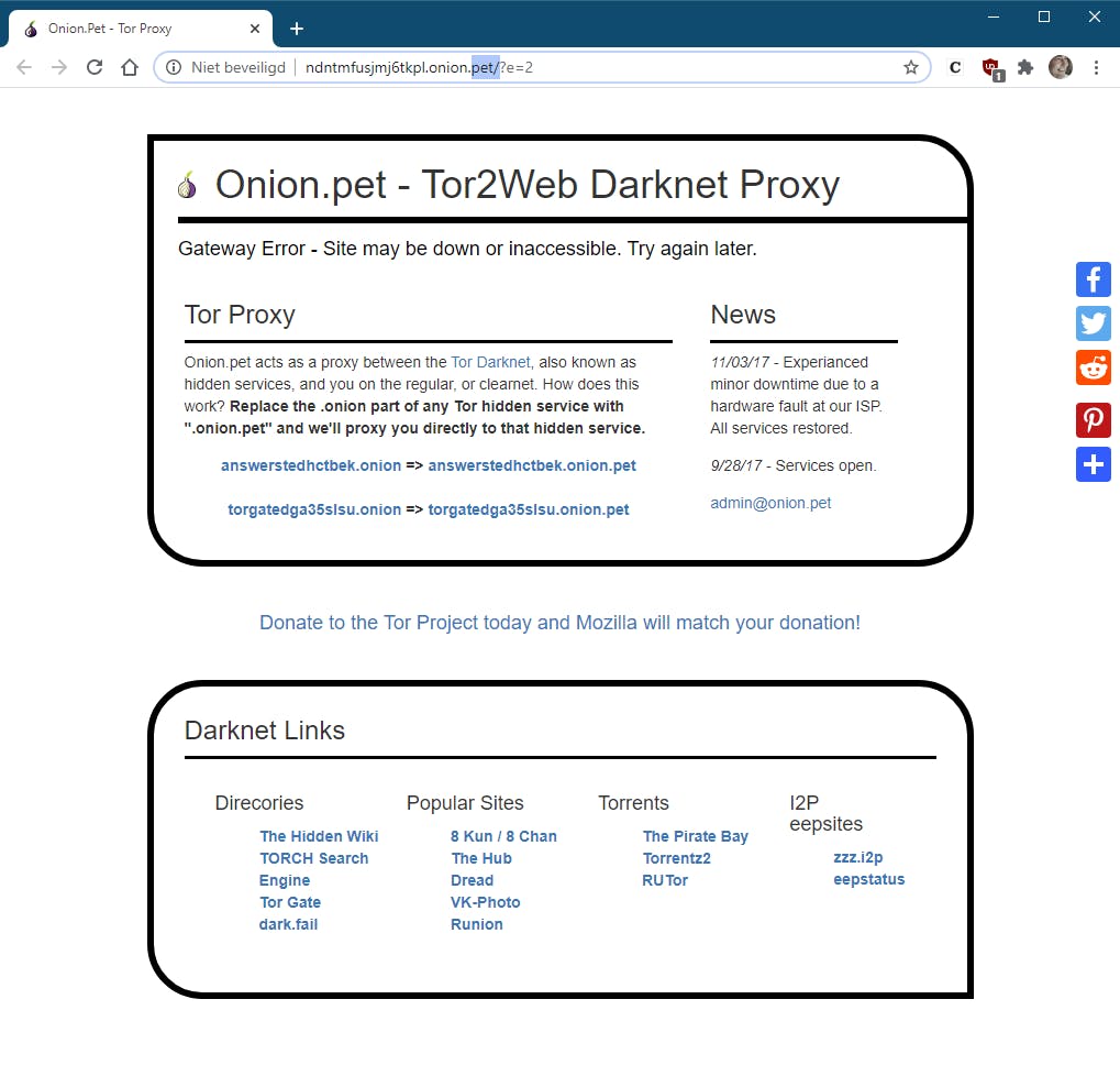 Deze proxy’s fungeren als een tor2web-gateway en sturen je verzoek via hun servers door naar het dark web, waarna het resultaat naar je browser terugkeert. De services pretenteren geen aanvragen te loggen, maar dat wil niet zeggen dat je anonimiteit daar ook mee gewaarborgd is.