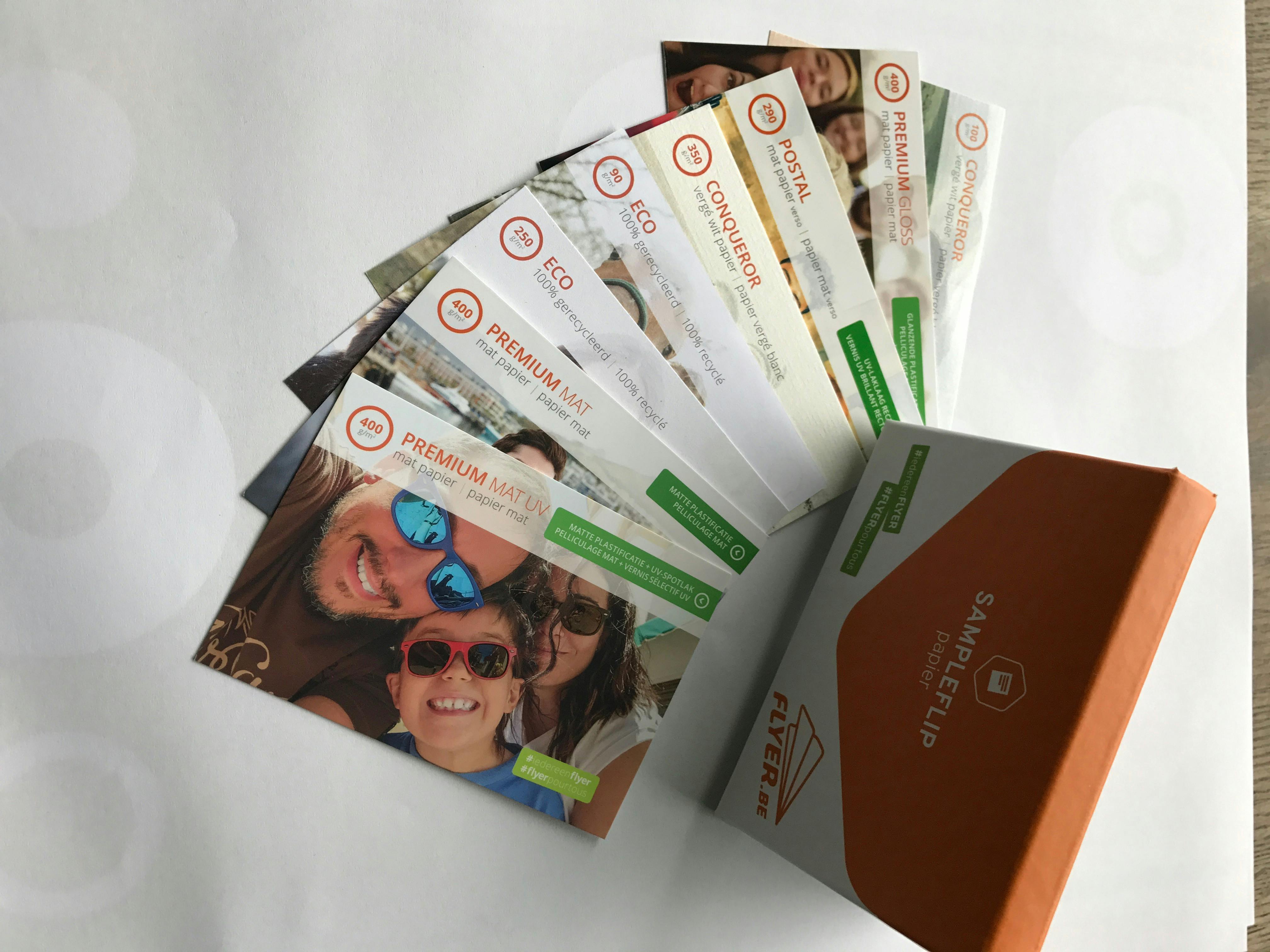 Er zijn heel wat verschillende papiersoorten. Een standaard papiergewicht voor visitekaartjes is 250 g/m2. Liever iets dikker? Dan kun je naar 290 g/m2 of zelfs 350 of 400 g/m2 gaan. Hoe dikker, hoe duurder. Een andere afweging die je moet maken is mat of glanzend. Als extra’s heb je dan nog UV-spotlak, een soft touch of glossy plastificatie. Hoe meer toeters en bellen, hoe opvallender maar ook hoe hoger de prijs. Omdat er zoveel verschillende mogelijkheden zijn, is het aan te raden om proefkaartjes aan te vragen bij je drukker. In veel gevallen krijg je die gratis toegestuurd.