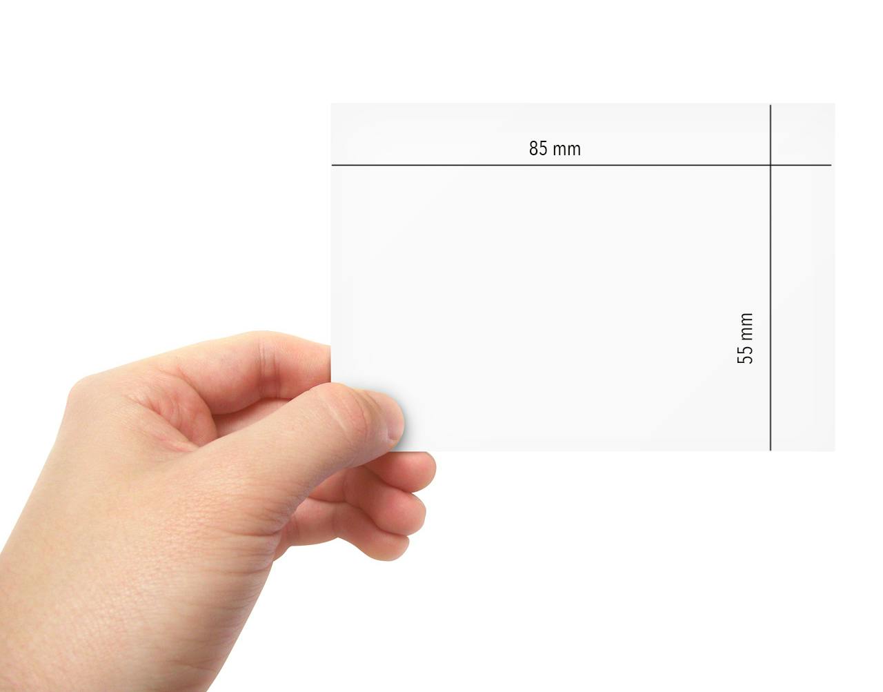 Visitekaartjes bestaan in verschillende formaten. Het meest gangbaar in Nederland en de rest van West-Europa zijn kaartjes van 85 x 55 millimeter. In andere regio’s zoals de VS en Rusland zijn iets andere rechthoekige afmetingen gebruikelijk. Uiteraard kun je om extra op te vallen juist voor afwijkende formaten kiezen. Vierkant of met ronde hoeken bijvoorbeeld. Houd er wel rekening mee dat dergelijke maten niet altijd in portefeuilles of speciale visitekaartmapjes passen. Ben je werkzaam in een professionele business, dan kun je sowieso het beste de conventie aanhouden. In uitgesproken creatieve of speelse branches zijn afwijkende afmetingen, vormen en materialen echter niet ongebruikelijk.
