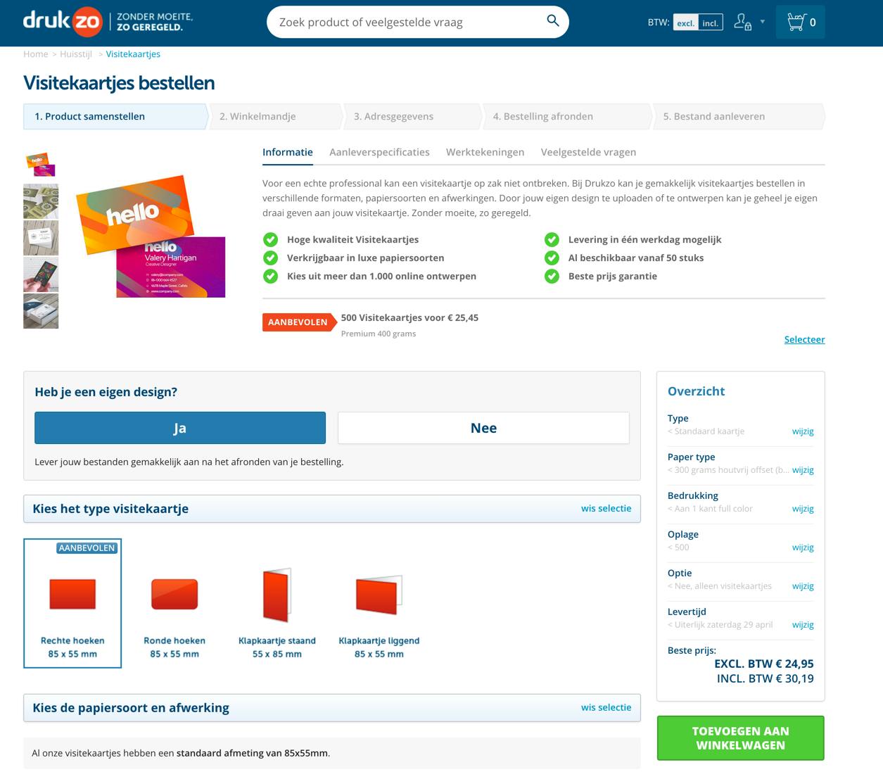 Ga je zelf ontwerpen, dan zul je uiteraard ook een drukker moeten kiezen. Ga je naar de drukker om de hoek, of maak je liever gebruik van een online service? De prijzendruk is groot, dus je kunt maar beter vergelijken. Houd er ook rekening mee dat niet elke drukker of online drukdienst dezelfde bestandsspecificaties gebruikt. Het is dus aangeraden om eerst te bepalen met welke drukker je in zee gaat en pas daarna aan je ontwerp te beginnen. Wij hebben goede ervaringen met www.drukzo.nl, www.drukwerkdeal.nl en www.drukland.nl. Houd ook in het achterhoofd dat er vaak kortingen of voucher-codes op het web te vinden zijn. Op die manier kun je de prijs nog wat drukken of bijvoorbeeld voor gratis verzending in aanmerking komen.