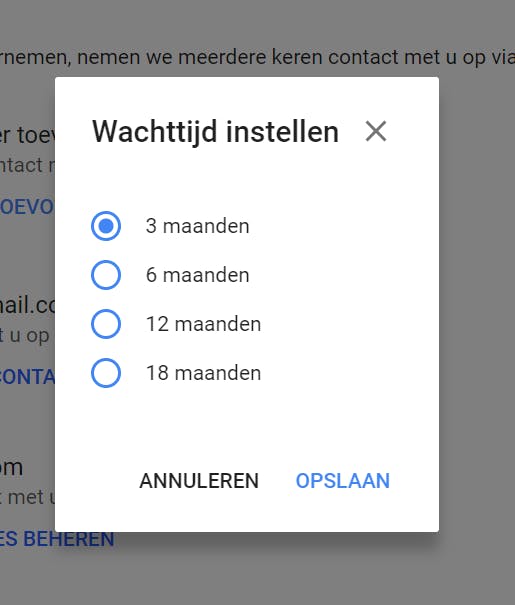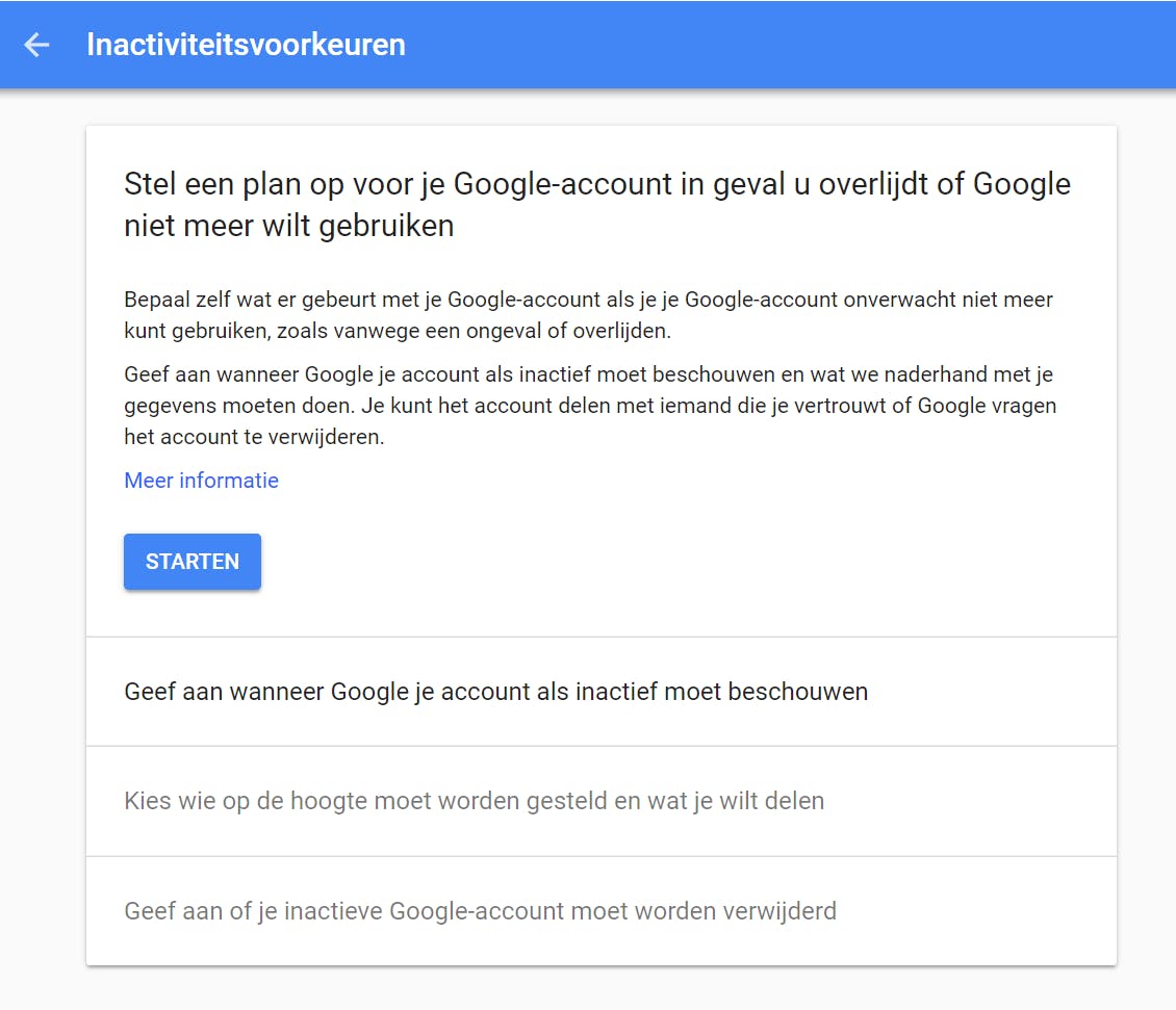 Je kunt dit trouwens ook instellen als je gewoon een account bij Google wilt verwijderen.