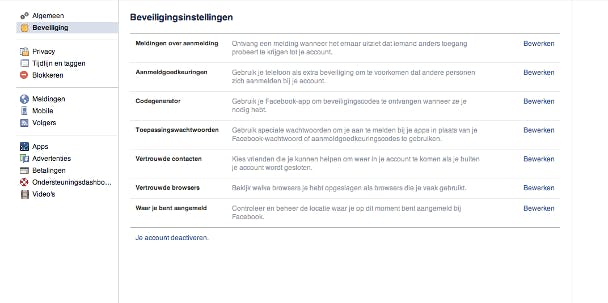 Onderin zie je nu de optie Je account deactiveren. Wanneer je hierop klikt is je account nog niet direct gedeactiveerd. Facebook probeert je nog over te halen om je account actief te houden, maar geen zorgen, het deactiveren is niet permanent. Zodra je besluit dat je Facebook weer toe wilt laten in je leven, kun je je account gewoon weer activeren, je zult in de tussentijd geen gegevens kwijtraken.