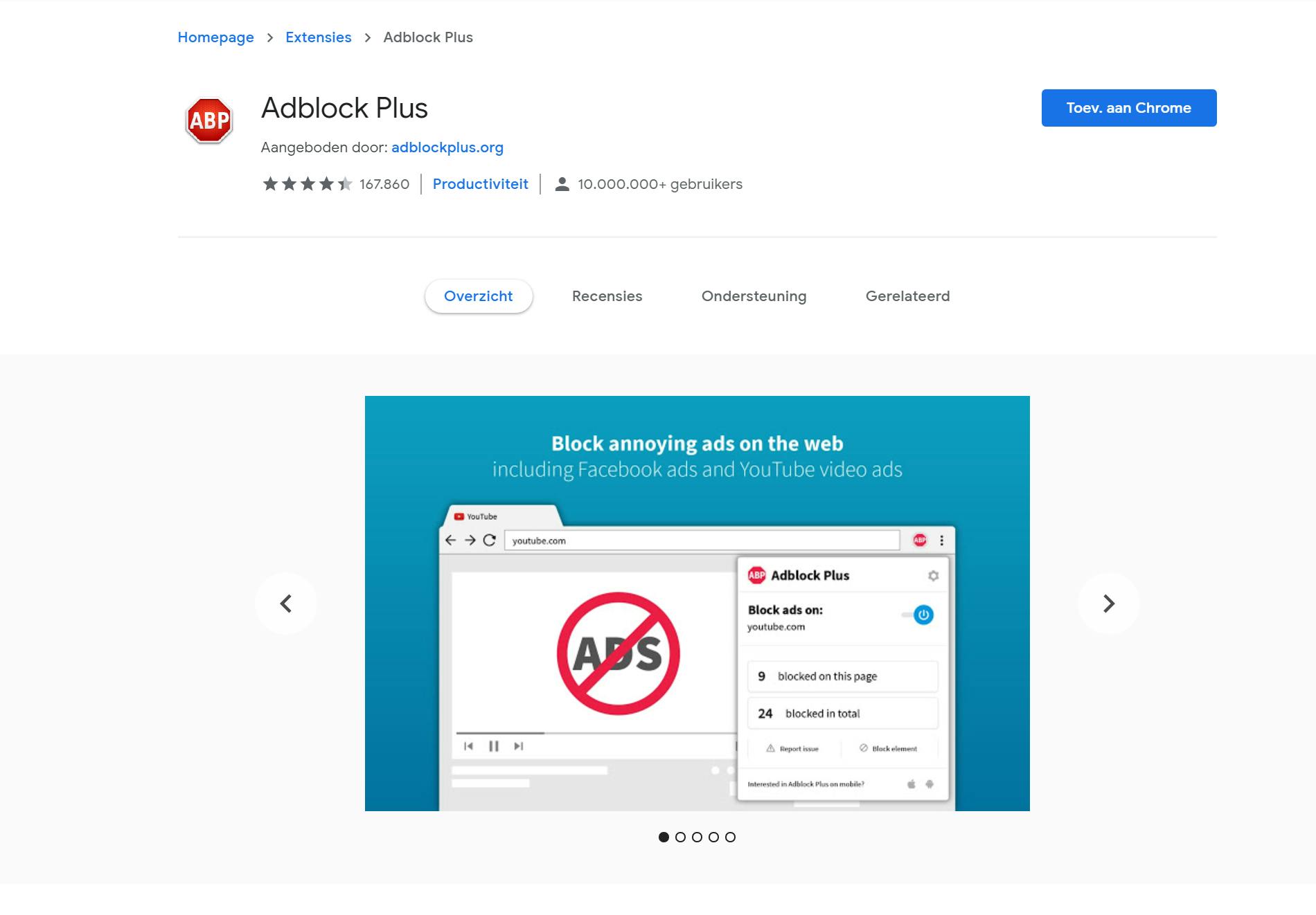 In dit artikel heb je kunnen lezen hoe je voorkomt dat advertenties die je ziet zijn gebaseerd op je online activiteit. Hoewel de sociale netwerken je deze optie zelf niet bieden, is er ook een mogelijkheid om advertenties helemaal uit te schakelen. Je doet dit met behulp van een gratis browserextensie genaamd Adblock Plus (beschikbaar in de extensiewinkel van de browser van je keuze). Wanneer je deze extensie installeert, worden alle advertenties op YouTube, Facebook enzovoort geblokkeerd, zodat je er geen last meer van hebt. De advertenties worden in principe nog wel getoond, maar de extensie ‘vangt hen op’ en zorgt dat ze onzichtbaar zijn voor je. Hoewel Adblock fantastisch werkt, plaatsen we hier wel een kanttekening bij. Diensten als Facebook, YouTube en in principe elke andere website die je gratis gebruikt, kunnen bestaan bij de gratie van advertenties. Als iedereen Adblock zou gebruiken, zouden deze websites binnen mum van tijd verdwenen zijn óf een abonnementsmodel moeten introduceren. Daarmee zeggen we je niet dat je deze extensie niet moet gebruiken (dat is niet aan ons), maar het is wel belangrijk om deze kennis te hebben.