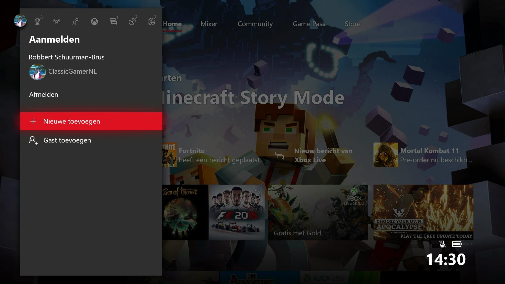Nu kan het account gebruikt worden voor aanmelding op de computer. Op een Windows 10-pc log je gewoon in met je eigen account. Ga naar Instellingen (Windows-toets+I) en klik op Accounts. Open Gezin en andere gebruikers. Selecteer onder Uw familie het account van het kind en klik op de knop Toestaan. Het kind kan zich nu aanmelden via het vergrendelscherm. Om het account op een Xbox One aan te melden druk je op de Xbox-knop en selecteer je de gamerafbeelding (linksboven in de hoek). Kies vervolgens Nieuwe toevoegen en vul de gegevens van het kinderaccount in om het aan te melden bij de Xbox One.