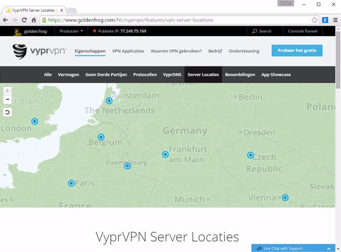 Bekijk nauwkeurig in welke landen de VPN-servers zijn gevestigd.