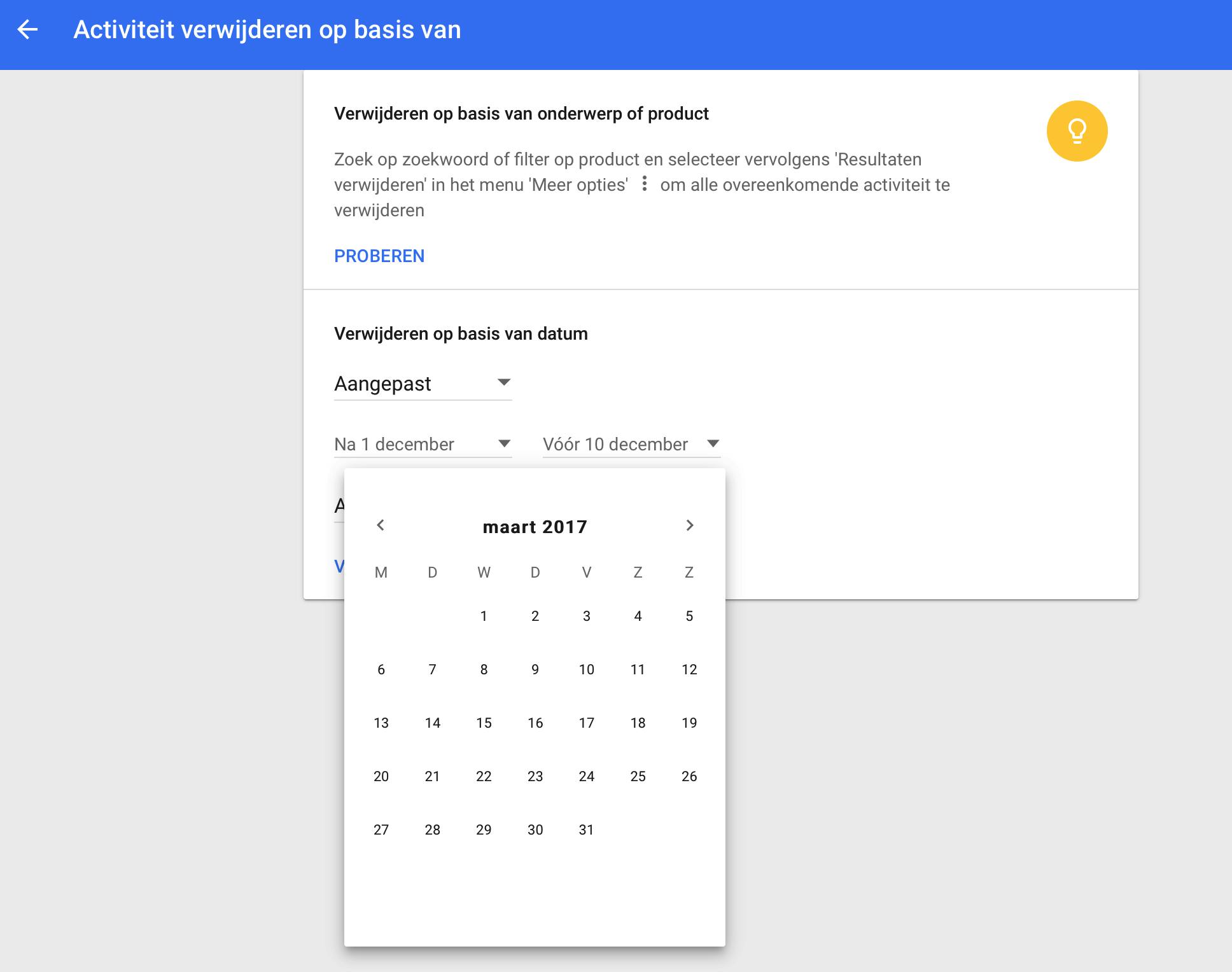 Dat Google zoveel over je weet, komt niet alleen door het gebruik van deze zoekmachine, maar ook door de brede waaier aan diensten die stevig ingeburgerd zijn. Uiteraard heeft Google je zoekgeschiedenis opgeslagen. Deze gegevens vind je terug in je Google-account. Log in en klik op het account-icoontje zodat je naar Mijn account kunt gaan. Vervolgens selecteer je bij het onderdeel Persoonlijke info en privacy de optie Mijn activiteit. Klik op Menu (de drie verticale stippen) en selecteer Activiteitsopties. Begin bij het onderdeel Web- en app-activiteit en klik op Geschiedenis beheren. Hier staat hoe je de zoekmachine hebt gebruikt. Om deze informatie te wissen, kies je in het menu links de opdracht Activiteit verwijderen op basis van. Hier heb je de mogelijkheid om op basis van onderwerp alles op te ruimen, of op basis van een bepaalde periode. Wil je meteen helemaal schoon schip maken met deze zoekgeschiedenis, dan selecteer je Onbeperkt bij het datummenu.