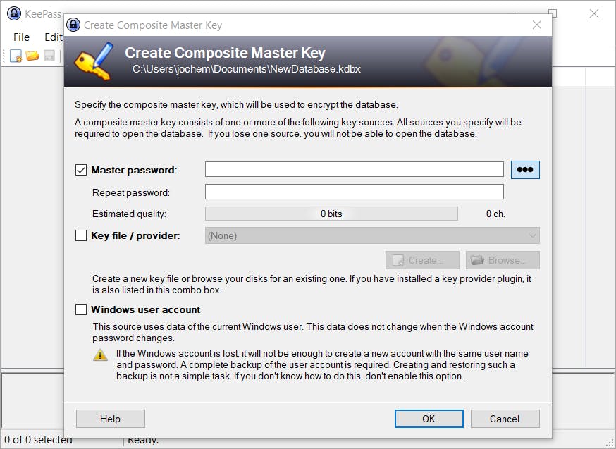 Nog een manier om ongewenste gasten buiten de deur te houden van je belangrijke accounts is om sterke wachtwoorden te gebruiken. Nu zijn we allemaal mensen en komt het er vaak op neer dat je wachtwoorden van accounts hergebruikt. Met een wachtwoordmanager voorkom je dat. We gaan aan de slag met KeePass. Kies voor de Professional Edition – Installer, deze versie is gewoon gratis. Voer het gedownloade bestand uit en volg de installatiestappen. Je hoeft alleen een aantal keer op Volgende te klikken. Start KeePass na de installatie. Klik op Enable om automatisch op updates te controleren. Klik linksboven op File / New. Kies een locatie om je wachtwoorddatabase op te slaan en vul een Master Password in. Zorg dat dit een sterk wachtwoord is en onthoud het (als jet kwijtraakt of vergeet kom je de wachtwoorddatabase niet meer in!). Klik op OK / OK om het op te slaan. Het is nu de bedoeling dat je willekeurige wachtwoorden genereert en je wachtwoorden van je sociale accounts wijzigt. Kies een categorie uit de lijst en klik op Edit / Add Entry. Voer je gegevens in. Met de drie puntjes naast Password genereer je een veilig wachtwoord. Sla je wijzigingen op met File / Save.
