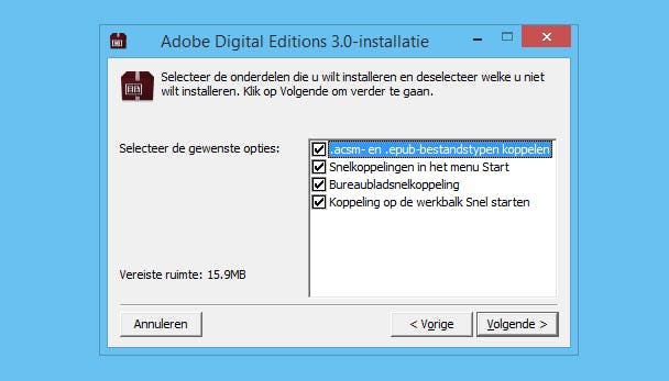 Zodra je het programma hebt geïnstalleerd, komt elk boek dat je download, voortaan automatisch in Adobe Digital Editions (vanaf nu ADE genoemd) terecht. Met hetzelfde programma zet je ze over naar je e-reader. Wil je dit niet, dan kun je dit uitschakelen, maar moet je elk beveiligd boek handmatig aan ADE toevoegen.