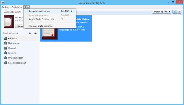 Eenmalig moet je de computer autoriseren in Adobe Digital Editions.