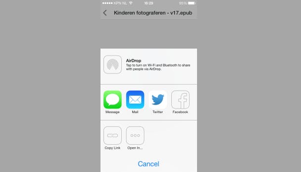 Via Open in / Open in iBooks open je een e-book op een iPad of iPhone.