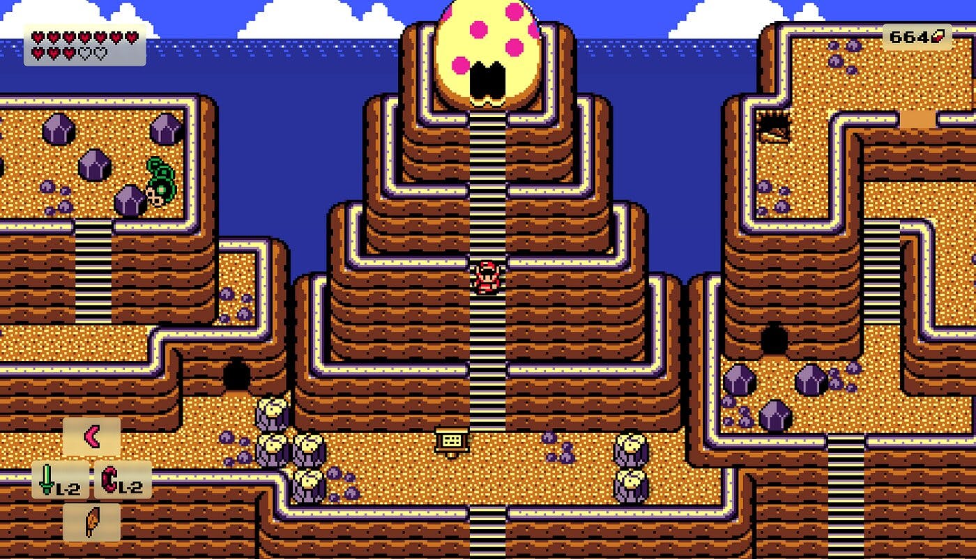 Zelf haalden de regisseurs, Takashi Tezuka en Yoshiaki Koizumi, inspiratie uit de dramaserie Twin Peaks. Zoals een kleine cast van excentrieke dorpsbewoners die Link steeds vreemde opdrachten geeft. Op zijn beurt inspireerde Link’s Awakening weer het team dat werkte aan de volgende grote Zelda-game. Want Link’s Awakening liet zien dat een Zelda-spel niet vast hoefde te zitten aan klassieke fantasy-elementen. Of je nu met je zwaard tegen een draak vecht, of de Chain Chomp-achtige Bow-wow aan het uitlaten bent: het voelt allemaal als Zelda.