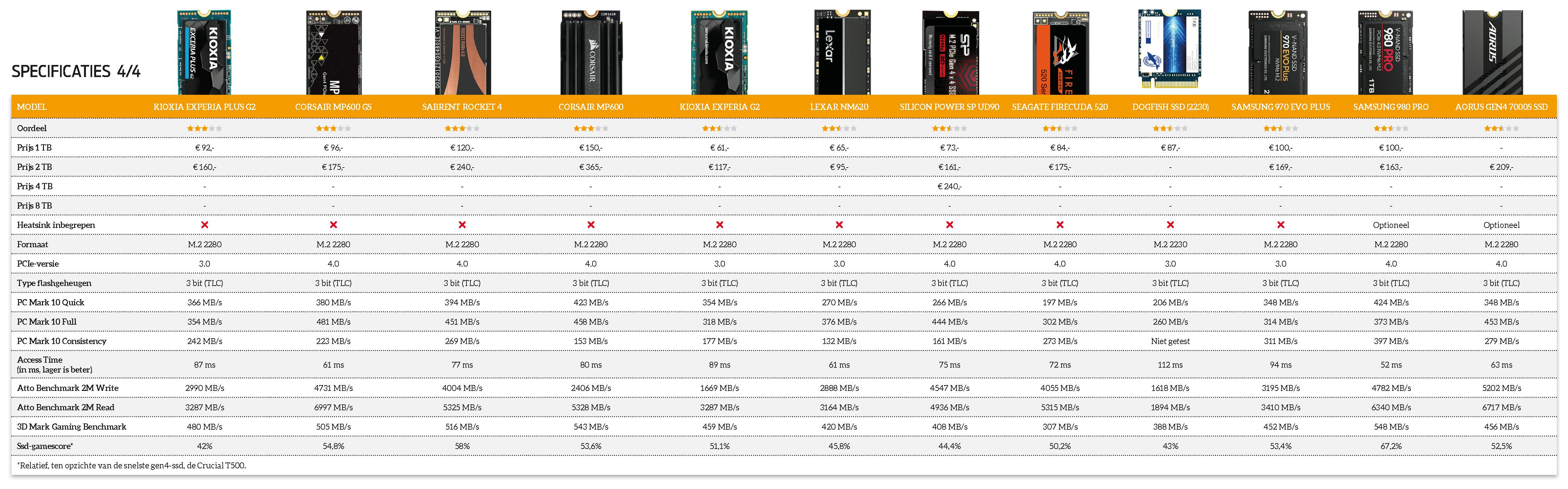 Uiteraard is dit niet de enige high-end-ssd op de markt. Andere interessante ssd’s zijn de Crucial T500, SK Hynix P41 Platinum, WD Black SN850x en de Kingston Fury Renegade.
