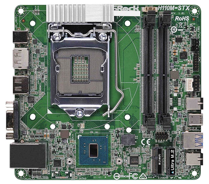 De recente H110S2 (86,50 euro) is voor minder dan honderd euro te koop, terwijl dit exemplaar je mini-pc van alle gemakken voorziet. Het betreft een moederbord met de recente mini-stx formfactor, waarbij gebruikers zelf een processor op de veelgebruikte LGA1151-socket kunnen prikken. Verder is er plek voor twee ddr4-geheugenmodules met een kloksnelheid van 2133 MHz en een capaciteit van in totaal 32 GB.