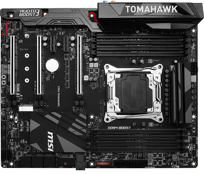 Als je alleen genoegen neemt met brute rekenkracht, kun je niet om een moederbord met een Intel X99-chipset heen. Hierop is namelijk de 2011-3-socket gemonteerd, zodat je een Intel Broadwell-E-processor kunt aansluiten. De X99A Tomahawk van MSI (282,90 euro) voldoet aan alle eisen. Met plek voor acht ddr4-geheugensloten met een maximale klokfrequentie van 3333 MHz komt je niet snel werkgeheugen tekort.