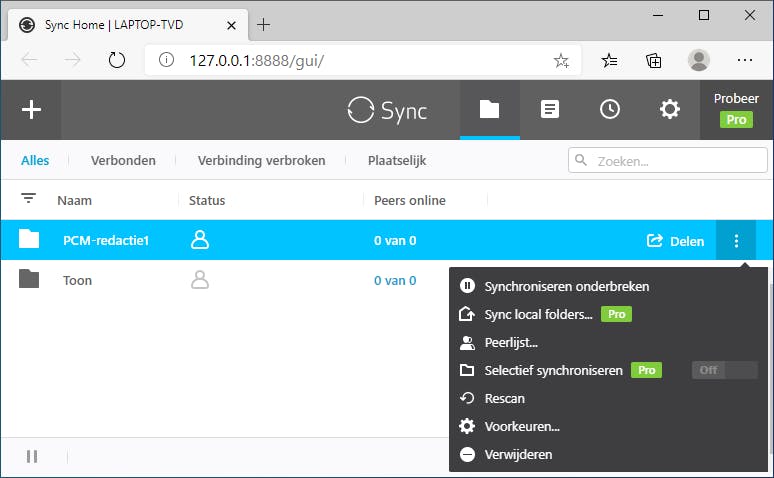Op vergelijkbare manier kun je nu nog andere synchronisatiemappen toevoegen en ook andere pc’s met de server verbinden. Die hoeven zich zelfs niet eens in hetzelfde (thuis)netwerk te bevinden.