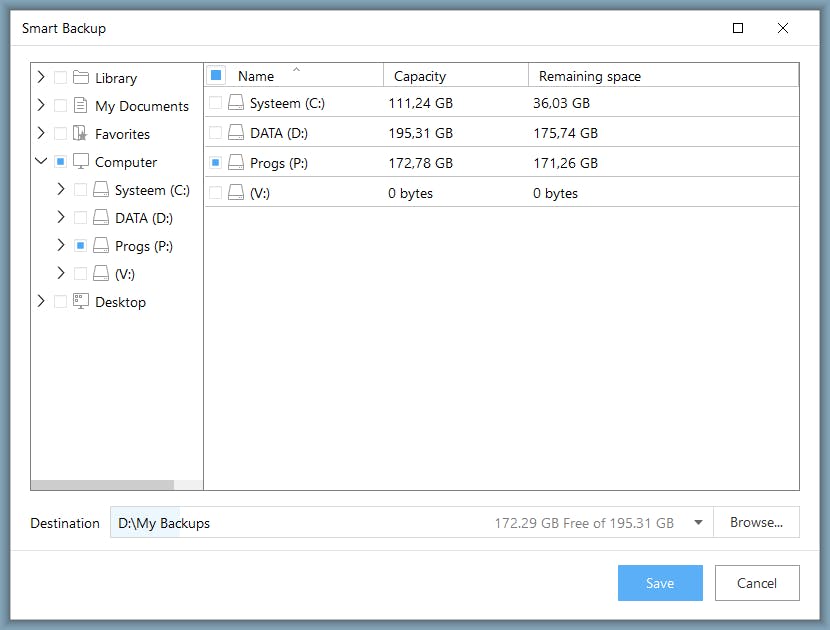 Om met Smart Backup aan de slag te gaan, hoef je eigenlijk alleen maar alle bestanden aan te duiden die je in de back-up wilt hebben. Standaard staan al je documentenmap, favorieten en bureaublad geselecteerd, maar door vinkjes te verwijderen of te plaatsen heb je dit snel aangepast. Controleer bij Destination of de juiste doelmap staat geselecteerd (je past die zo nodig aan via Browse) en zet de back-upoperatie in gang met Proceed. Netwerkstations worden blijkbaar niet in deze lijst opgenomen: wil je ook data uit zulke locaties back-uppen, lees dan verder.