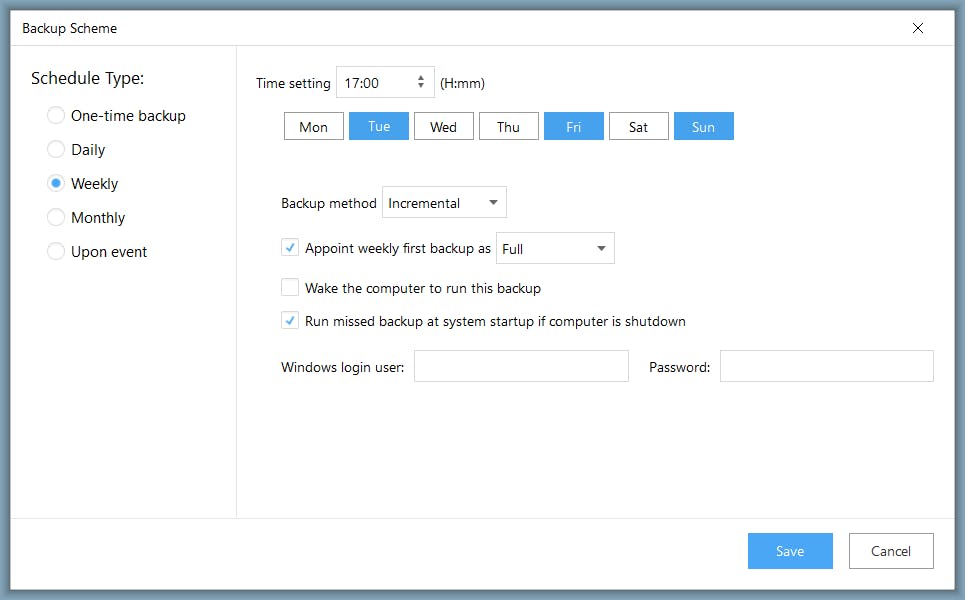 Houd je de back-up van je data liever zelf in de hand, dan kies je beter voor de meer klassieke aanpak van de optie File Backup, vooral omdat je hier ook toegang krijgt tot je netwerkstations. De werkwijze is in beginsel dezelfde als bij Smart Backup, maar je krijgt hier een aantal extra opties. Een ervan is de mogelijkheid om de back-upfrequentie zelf in te plannen. Daarvoor klik je op Schedule en geef je niet alleen de frequentie maar ook het back-uptype aan: Full, Incremental (alleen data die werd gemaakt of gewijzigd sinds een vorige back-up) of Differential (alleen nieuwe of gewijzigde data sinds de laatste volledige back-up).