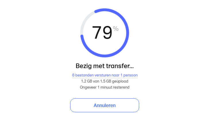 Volg in WeTransfer nauwlettend de voortgang van de geüploade gegevens.