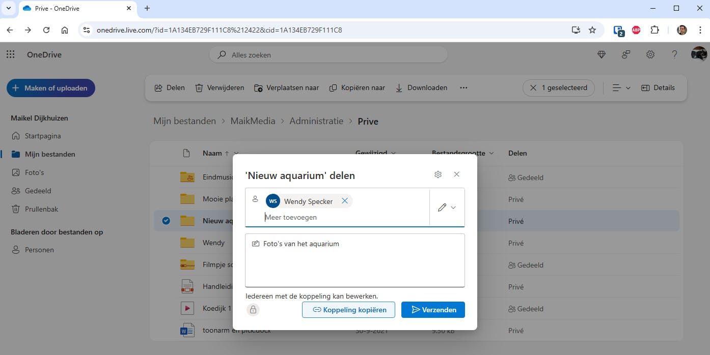 Vanuit Microsoft OneDrive deel je simpel een complete map met bekenden.