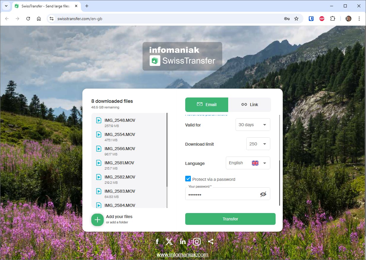 SwissTransfer is zeer de moeite waard. Deze Zwitserse deeldienst hanteert een riante gratis bestandslimiet van maar liefst 50 GB. Dat is in veel gevallen voldoende om een volledige kopie van een blu-ray-schijf te delen! Bovendien heeft de dienst ook diverse nuttige extra’s.