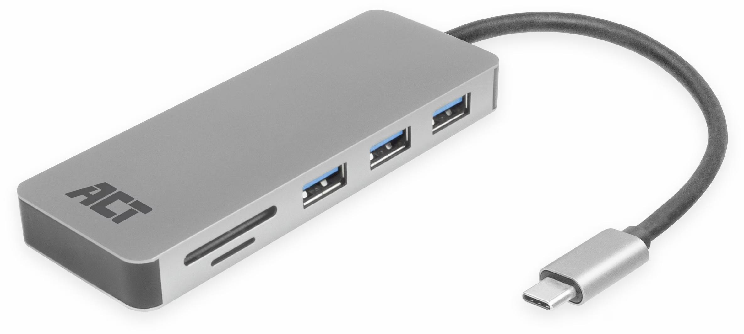 Vrijwel alle recente laptops en pc’s hebben een usb-c-poort. Koppel daar deze betaalbare usb-hub aan en je hebt in één klap toegang tot diverse aansluitingen. De stevige aluminium behuizing biedt drie usb-a-poorten en twee geheugenkaartlezers (compatibel met SD- en microSD). Een pluspunt is de ondersteuning voor usb Power Delivery met een maximaal vermogen van 85 watt. Zo kun je een geschikte laptoplader aansluiten en fungeert de ACT AC7050 als volwaardig dockingstation.