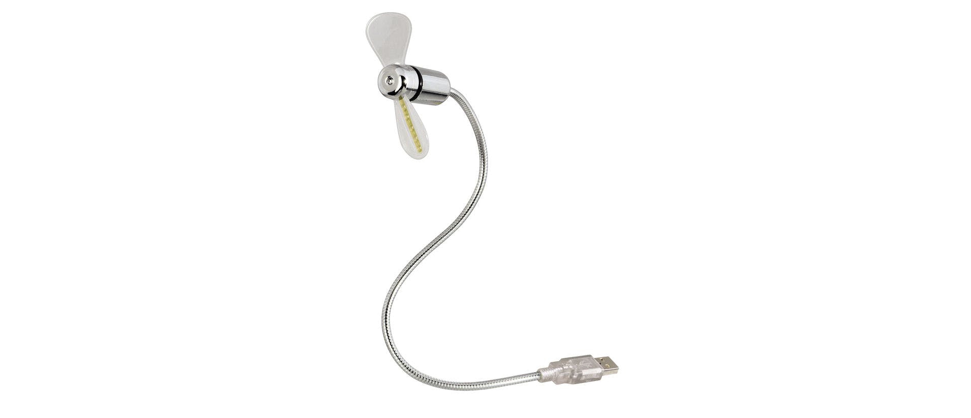 Werk je op verschillende plekken, dan is deze ventilator ideaal. De meeste laptops hebben aan de zijkant één of meerdere usb-a-poorten; steek de connector van deze ventilator daarin en beweeg de flexibele zwanenhals in de gewenste richting. Dankzij de lengte van dertig centimeter kun je alle kanten op. Werk je weleens in het donker? In dat geval vallen de vijf gekleurde leds nogal op. Die geven je (werk)kamer een fraai effect. Je zet de verlichting met een schakelaar aan of uit.