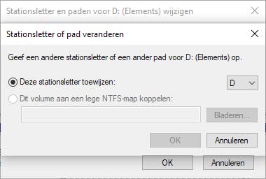 Normaal gesproken wijst Windows automatisch een schijfletter toe aan het geselecteerde station, maar je kunt ook voor een eigen letter kiezen door op het pijltje naast de stationsletter te klikken. Klik op OK om de stationsaanduiding te bevestigen.