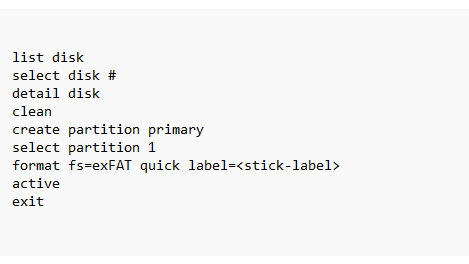 Voor de formattering gebruiken we hier het bestandssysteem exFAT, maar je kunt ook FAT32 gebruiken. Met de parameter <stick-label> geef je de usb-stick een geschikte naam. Na afloop zou de usb-stick in Verkenner moeten verschijnen, klaar voor gebruik.