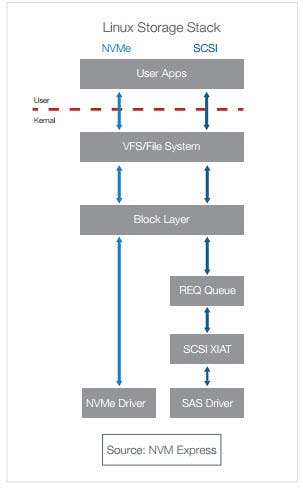 NVMe kan een aantal lagen uit de storage-stack weghalen, waardoor het een stuk efficiënter is dan AHCI.