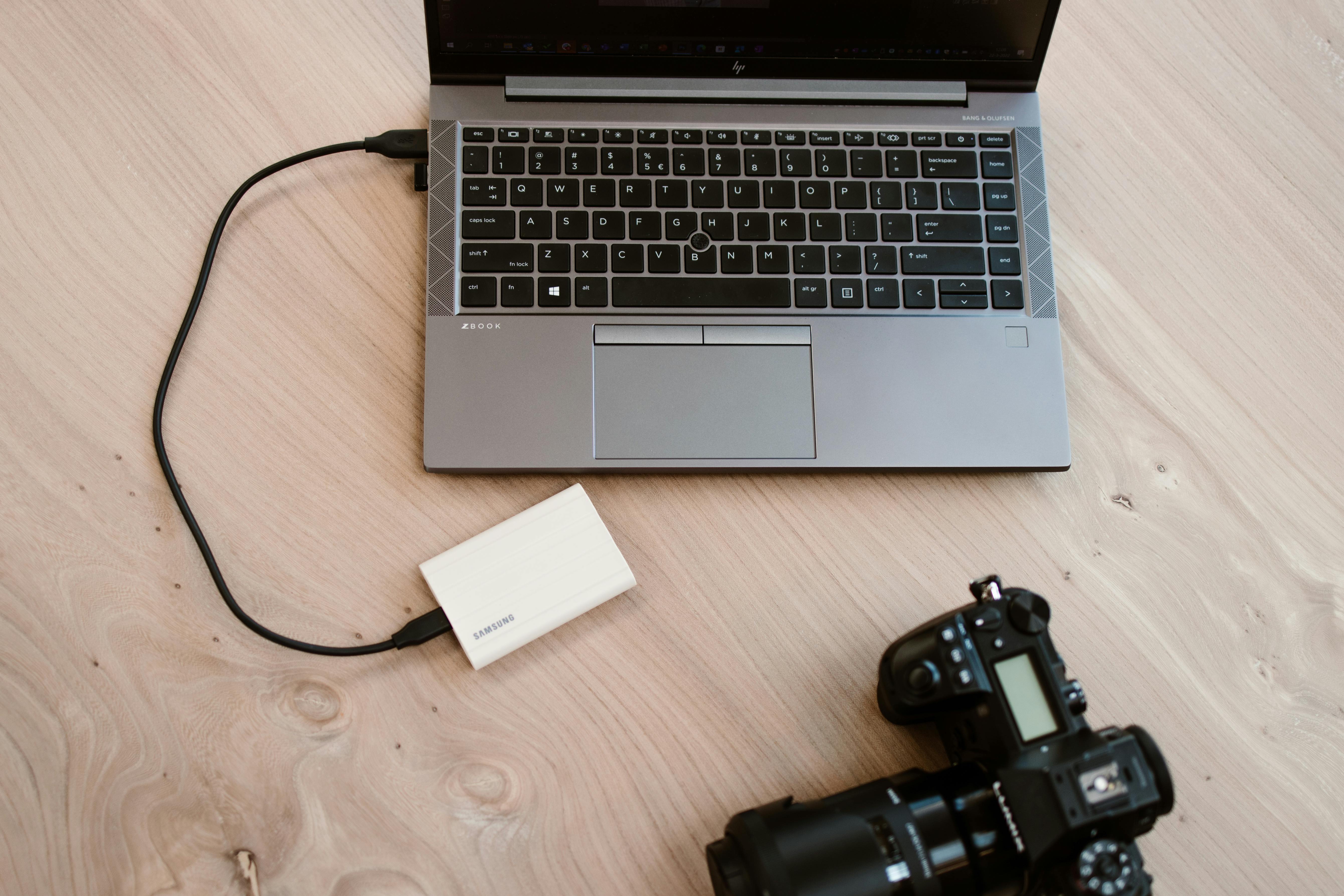 Sluit je camera aan op een laptop, of plaats het geheugenkaartje in de kaartlezer, en kopieer in één beweging de volledige kaartinhoud naar de Samsung T7 Shield. Eventueel maak je nog een extra kopietje aan op de interne laptopschijf, zodat je meteen twee reservekopieën hebt en je met nog meer zekerheid en een gerust hart weer lekker aan de slag kunt. Of je neemt twee T7’s mee, dat is een nog beter en veiliger idee.