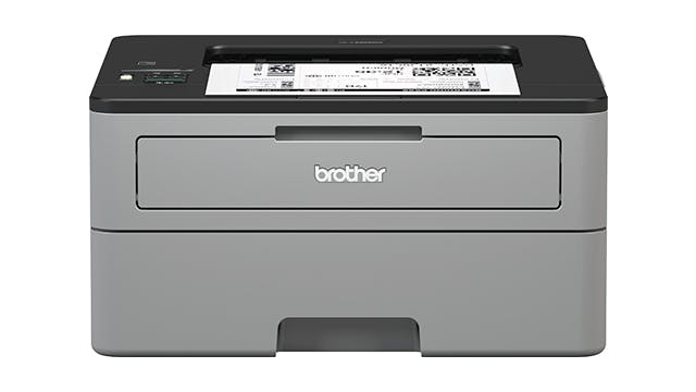 Deze laserprinter met 64 MB werkgeheugen is net als de HP LaserJet Pro M15w bedoeld voor gebruikers die niet al te veel printen. Het relatief lage gewicht van de Brother komt mede door het chassis dat grotendeels van grijze en zwarte kunststof is vervaardigd. Het eenregelige lcd-scherm en de drukknoppen vormen de bedieningsinterface. De afdrukresolutie is 1.200 dpi en de opgegeven afdruksnelheid bedraagt dertig pagina’s per minuut enkelzijdig en vijftien dubbelzijdig. Verbindingen lopen via usb 2.0 of 2,4GHz-wifi (b/g/n). Drum en toner zitten samen in één cassette, maar je kunt wel apart van de drum een nieuwe tonercassette plaatsen. Dit kan tot drie keer als je de XL-toner koopt die drieduizend afdrukken meegaat.
