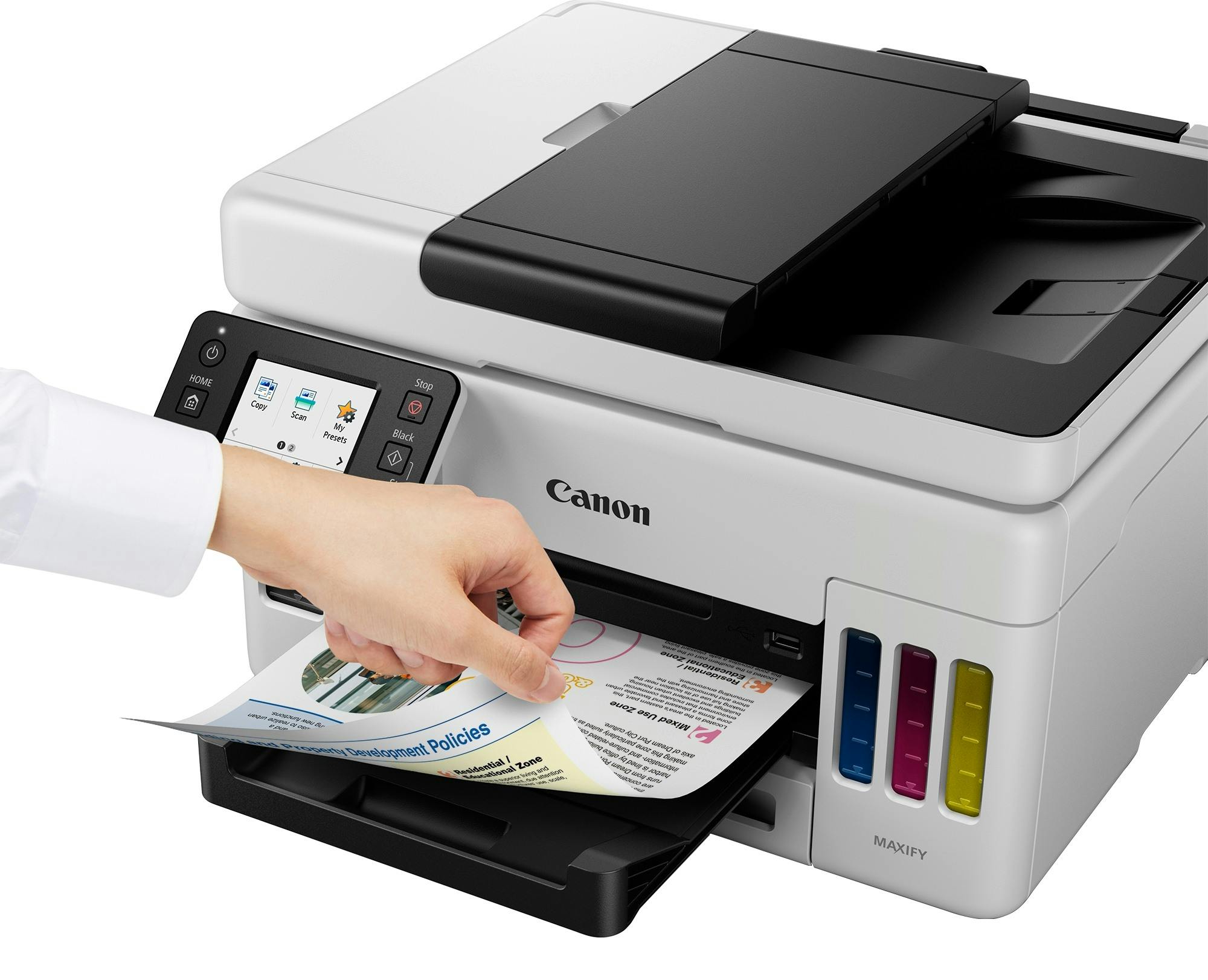 De betere printers hebben een papierhouder voor automatische documentinvoer. Hierin passen (geregeld) maximaal vijftig vellen, waarna je de paperassen in één keer achter elkaar scant of kopieert. Dat gaat véél sneller dan elk document handmatig verwisselen op de glasplaat. Nuttig voor lange handleidingen en verslagen. Veel printers ondersteunen ook nog eens dubbelzijdig scannen en kopiëren, zodat je er helemaal geen omkijken naar hebt. Ten slotte hebben bepaalde all-in-one-printers een fax-functie, al zijn die tegenwoordig wel in de minderheid.