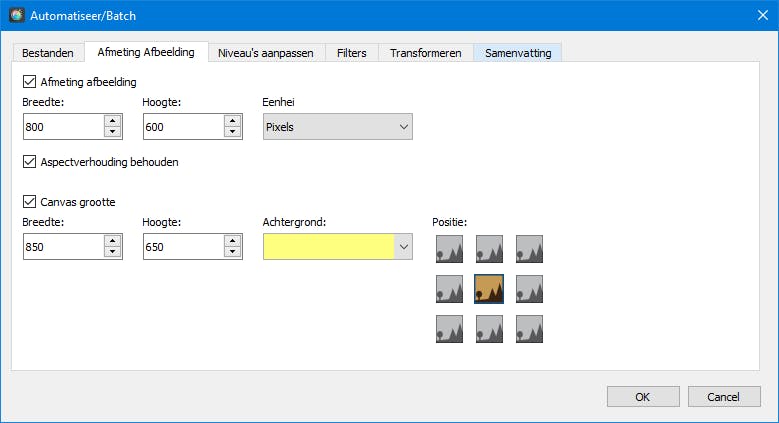 Gaat het om de foto zelf, dan tikt je de gewenste afmetingen gewoon in. Zorg er wel voor dat het kettingpictogram is geselecteerd als je de beeldverhoudingen wilt behouden.